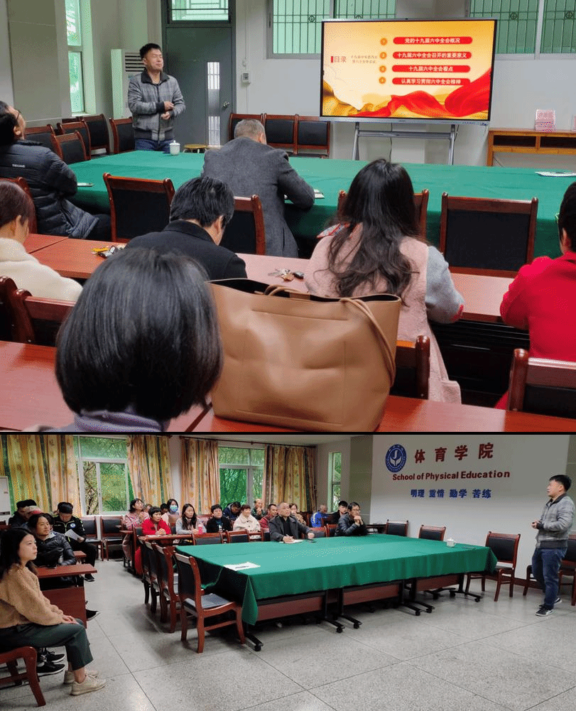 12月22日下午,我院教工党员在学院会议室专题学习党的十九届六中全会精神,讲座由我校学习贯彻党的十九届六中全会精神宣讲团成员、马克思主义学院杨杰博士主讲。讲座由学院党委书记蒋沈毅同志主持。