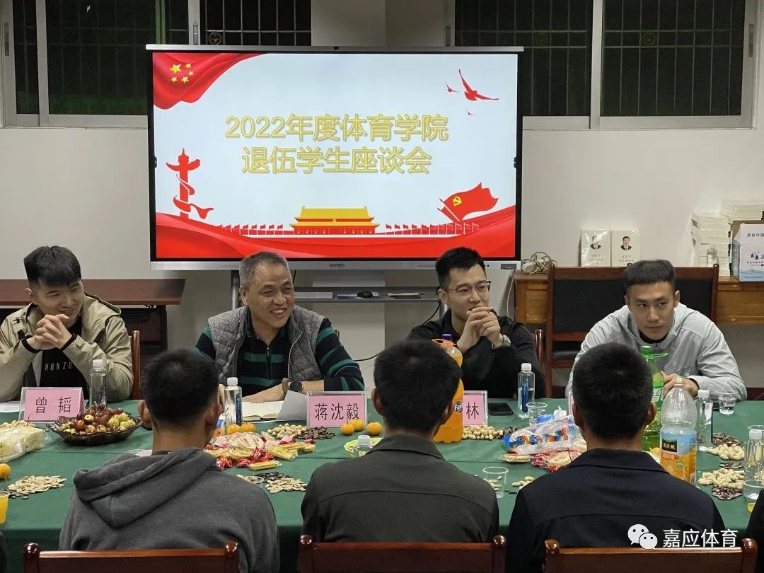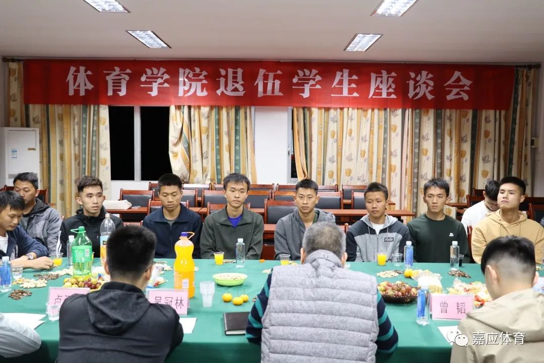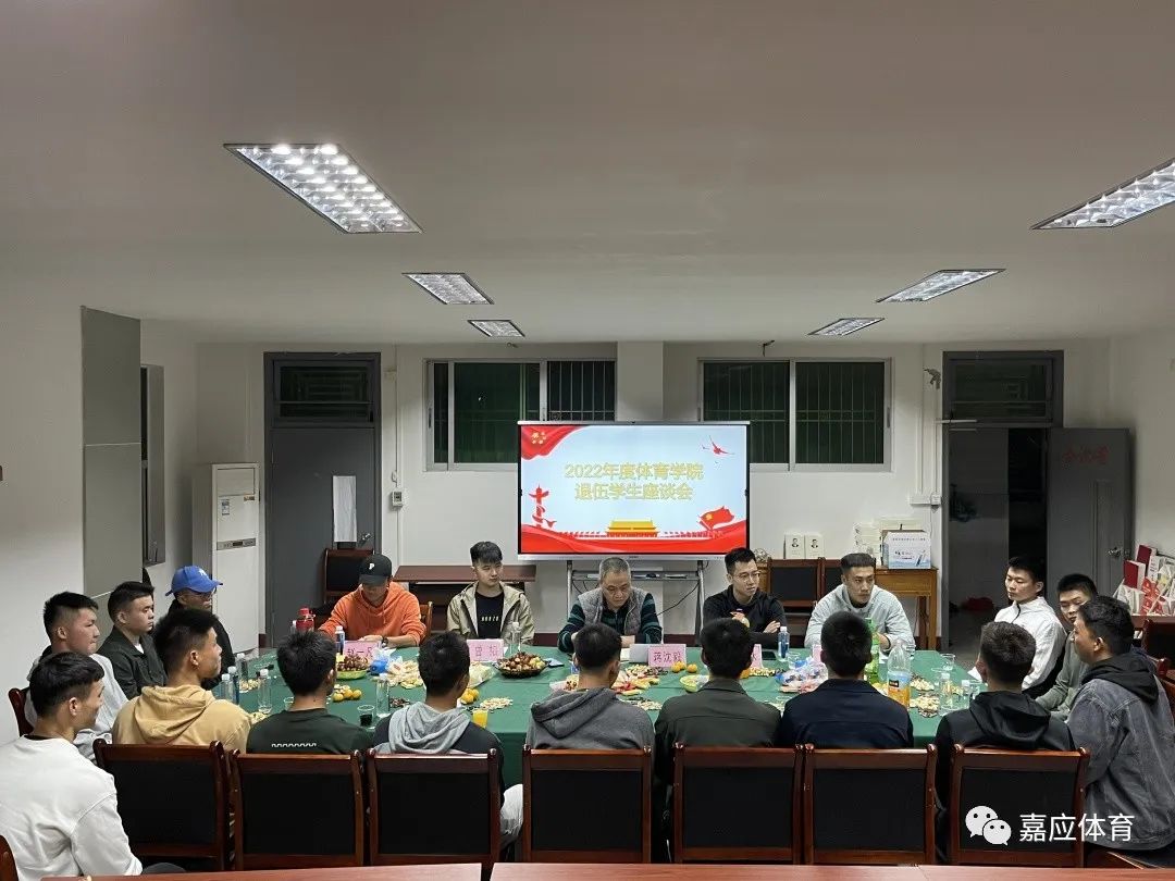 为进一步帮助退伍学生快速适应、融入大学生活,增强荣誉感和归属感。11月2日晚上,2022年度体育学院退伍学生座谈会在田师220会议室举行。体育学院党委书记蒋沈毅、学工办辅导员曾韬、吴冠林、赵一凡、卢泓名,2022年退伍学生以及学院退伍学生工作站成员参加座谈会。