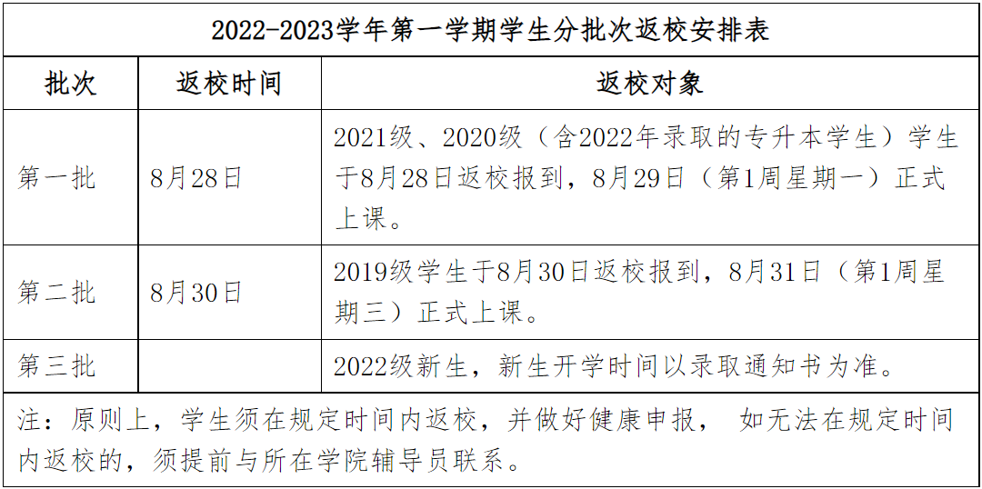 (二)教职工8月27日(星期六)正常上班。全面摸排师生员工开学前7天的行动轨迹,是否有高中低风险地区旅居史,切实掌握师生员工的身体健康状况,及查验新生和新入职教职工新冠疫苗接种记录,实行台账管理。