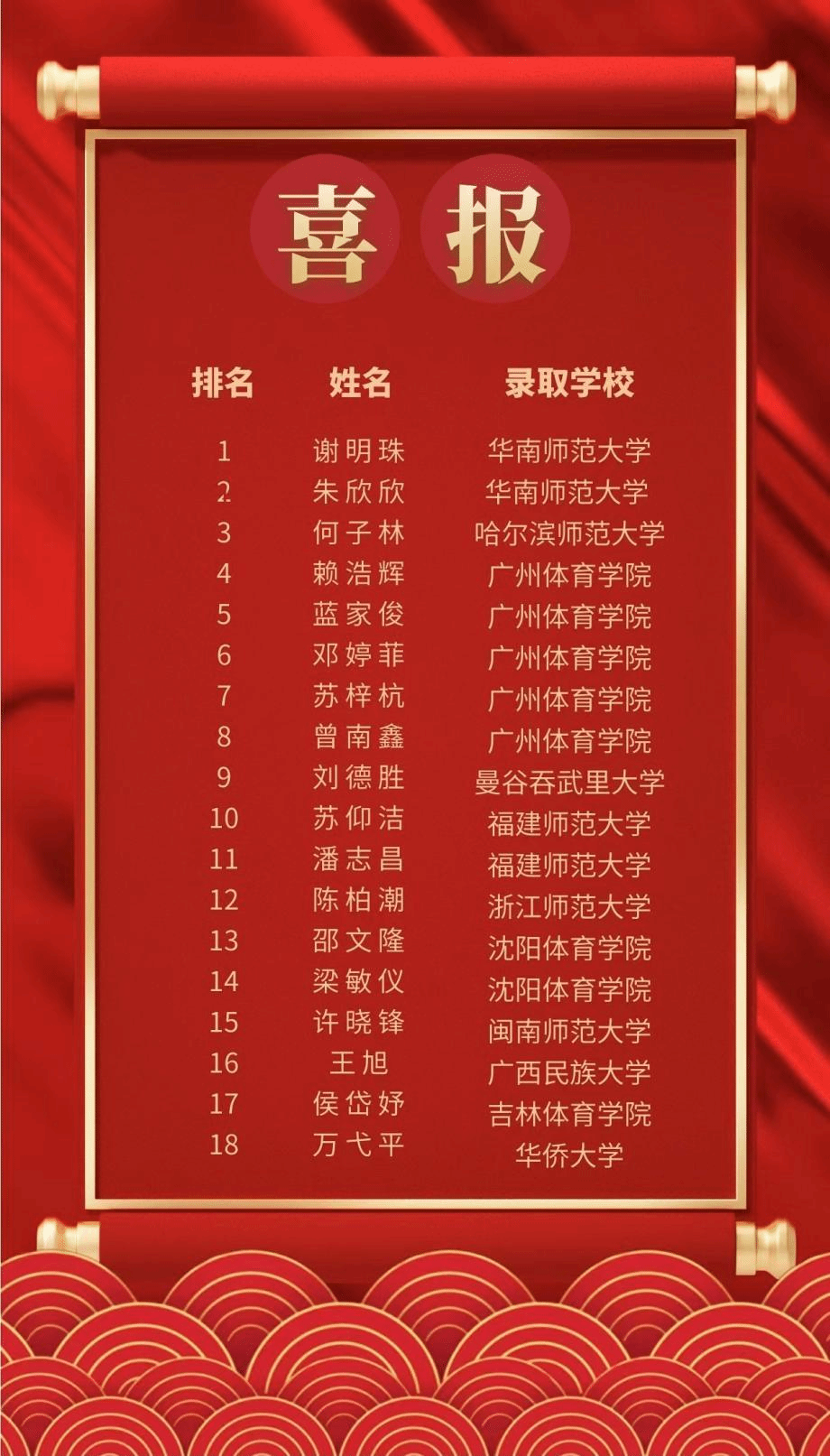 考研捷报传,桃李竞芬芳。2022年,我院考研工作硕果累累,2018级共有266名毕业生,其中有46人参加研究生招生考试,上线22人,成功录取18人,录取率39.13%,录取人数是去年的两倍,取得了优异的成绩!其中有部分同学被华南师范大学、浙江师范大学、福建师范大学等重点高校录取。